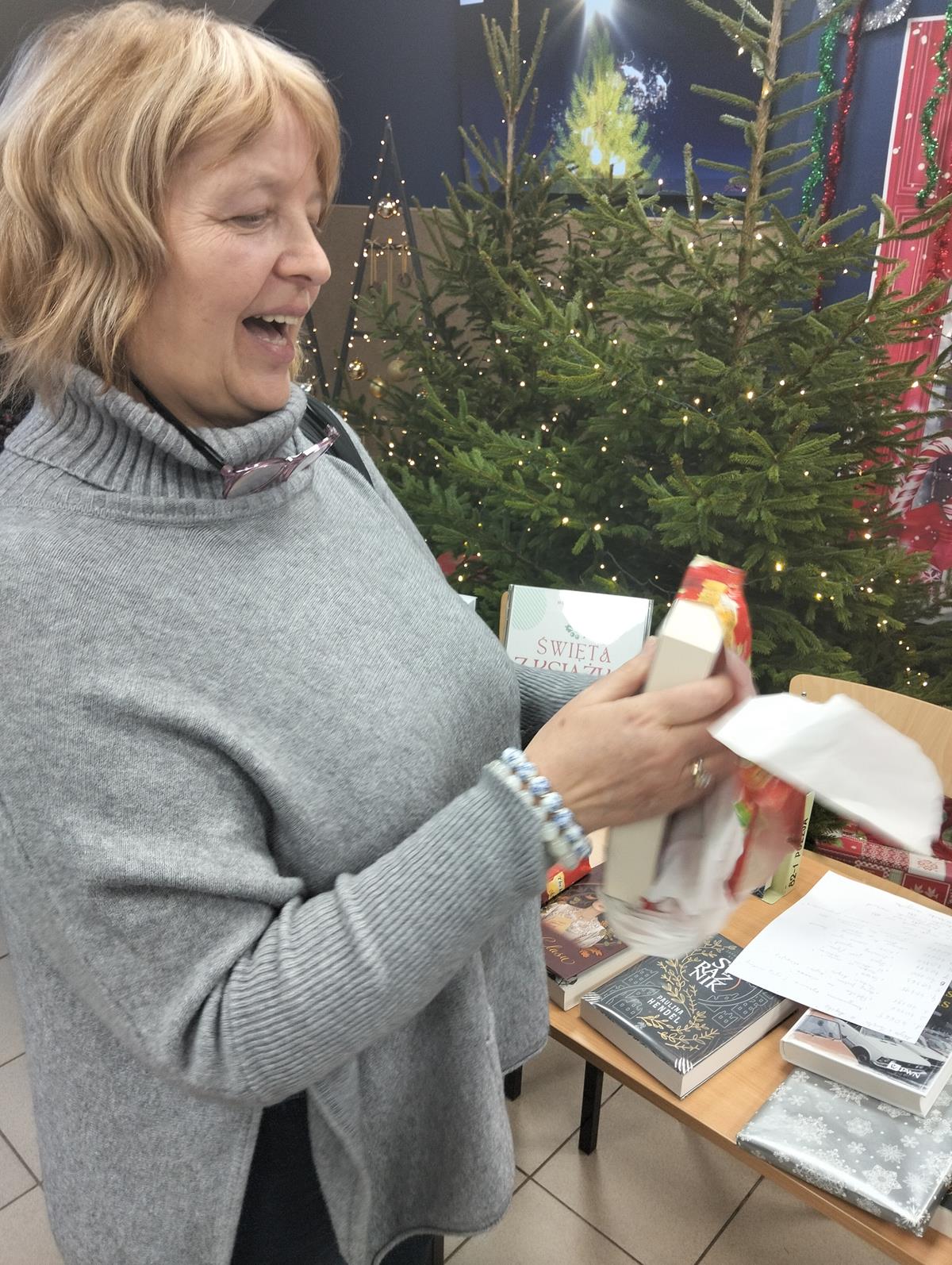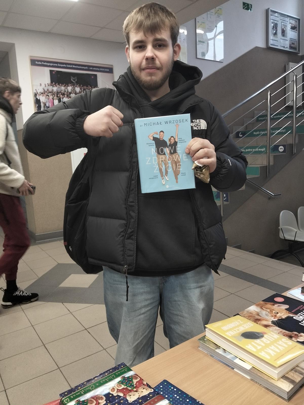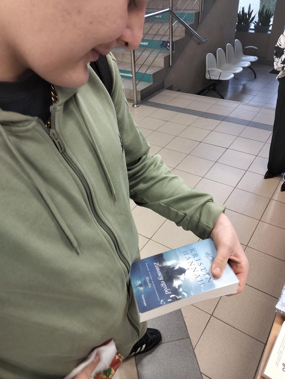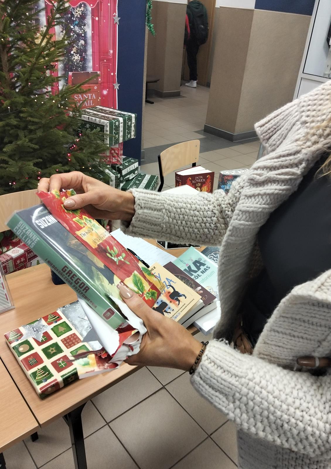 Akcja czytelnicza "Święta z książką" to przypomnienie, że literatura to świetna forma relaksu i wartościowego spędzania czasu podczas przerwy świątecznej. Biblioteczne stanowisko ponownie pojawiło się w głównej części szkoły. Podczas przerw wypożyczano lub losowano najnowsze książki zakupione w ramach Narodowego Programu Rozwoju Czytelnictwa 2.0. Odwiedziły nas również klasy 4 st1 i 2 em (z p. E. Szymańczuk).