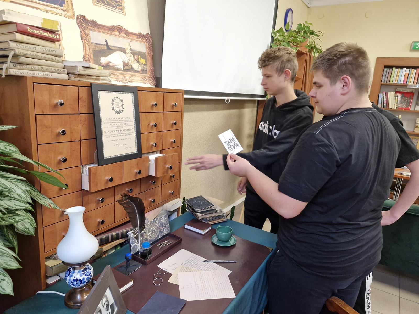 Noc Bibliotek za nami! Podczas niej udało się odnaleźć trzy zaginione eksponaty z wystawy. Dzięki zaangażowaniu uczestników gry bibliotecznej „Do dzieła” odzyskano: rękopis autora „Chłopów”, notatnik młodopolskiej poetki i obraz „malarki dusz”. Zabawa w pokój zagadek to już tradycja z okazji Nocy biblioteki w naszej bibliotece. Szybkie wyszukiwanie informacji, spostrzegawczość i współpraca okazały się niezbędne, aby odzyskać wykradzione z ekspozycji przedmioty.