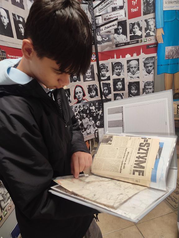 Wśród licznych fotografii, dokumentów, książek, obrazów, przedmiotów kultu religijnego, pamiątek z żydowskich domów oraz zakładów, nasi mieszkańcy poszukiwali inspiracji do prac konkursowych.