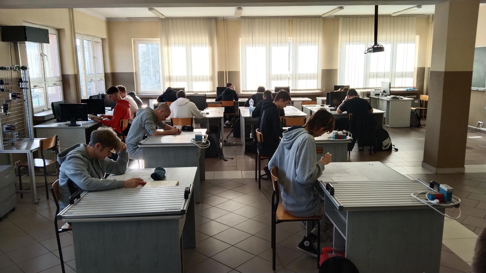 Dzisiaj, w środę 5 listopada odbył się etap szkolny Olimpiady Wiedzy o Elektryce i Energetyce Edu-Elektra. 17 uczniów z klas mechatronicznych zmierzyło się z zadaniami w kategoriach elektrotechnika, odnawialne źródła energii oraz urządzenia dźwigowe. Lista zakwalifikowanych do następnego etapu zostanie podana w grudniu. Mamy nadzieję reprezentację w każdej z kategorii,