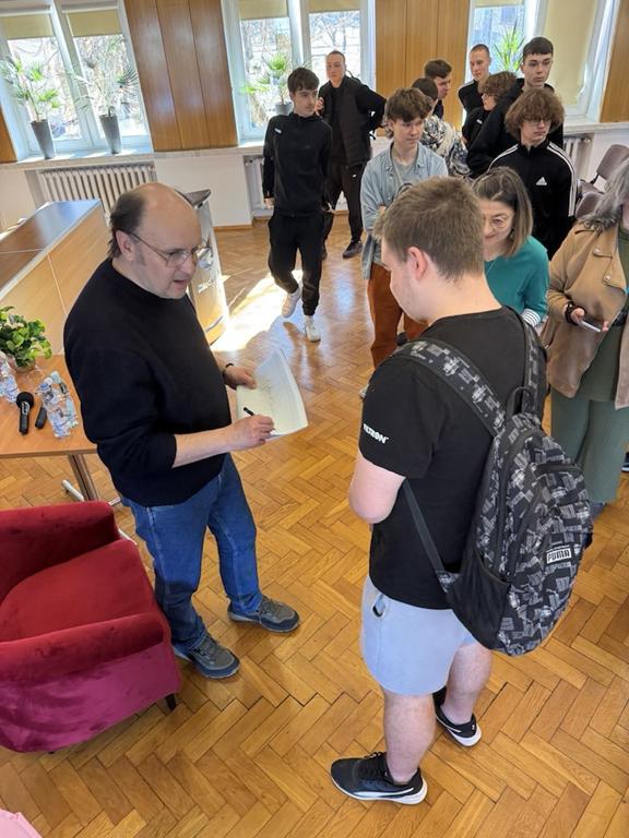 Przez kilkadziesiąt minut mieliśmy okazję posłuchać historii z życia wybitnego aktora, pana Adama Woronowicza. Był to czas szczerej rozmowy i refleksji. Gość opowiadał nie tylko