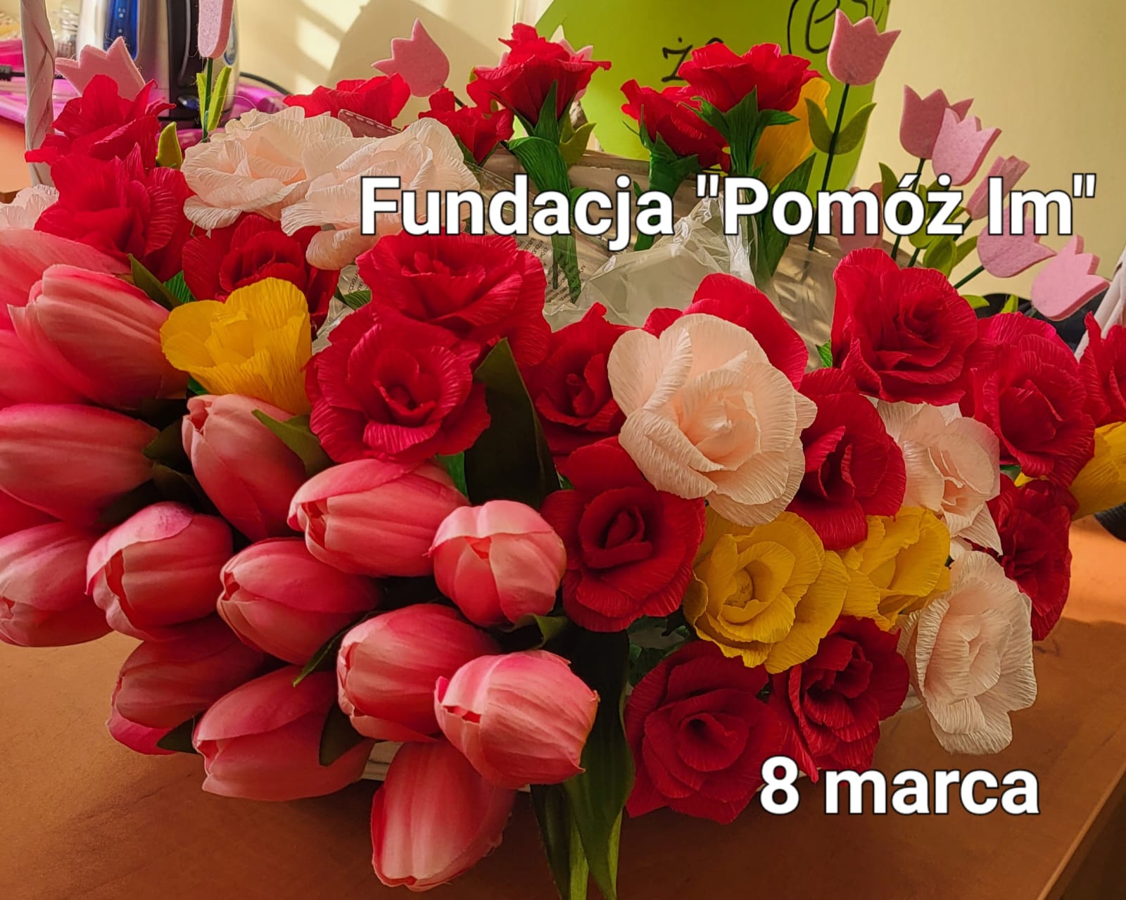Z okazji Dnia Kobiet przekazaliśmy Fundacji „Pomóż Im” Hospicjum dla Dzieci własnoręcznie przygotowane kwiaty – jako symbol pamięci, wdzięczności i serdeczności. Były one miłym dodatkiem do upominków ufundowanych przez Fundację.